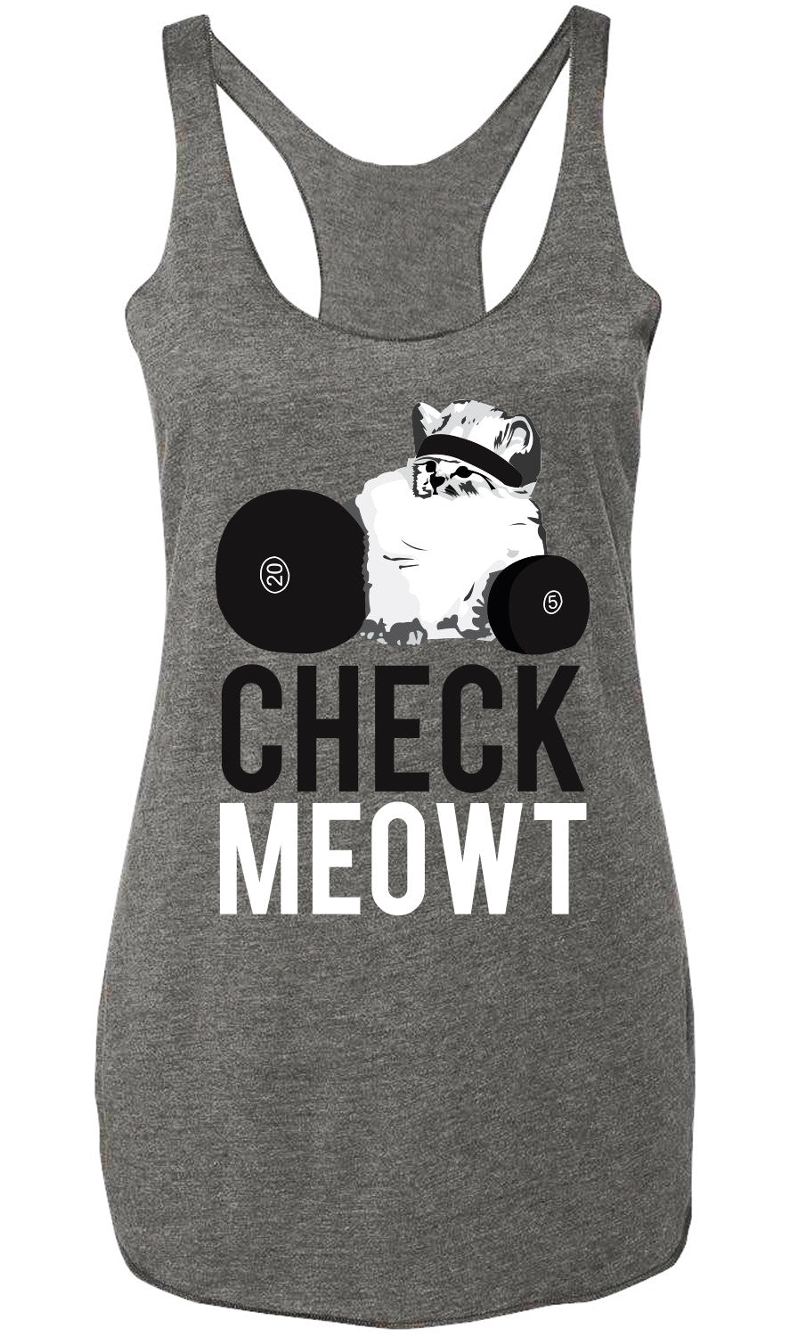 "CHECK MEOWT" Heather Gray Tank Top Pictured