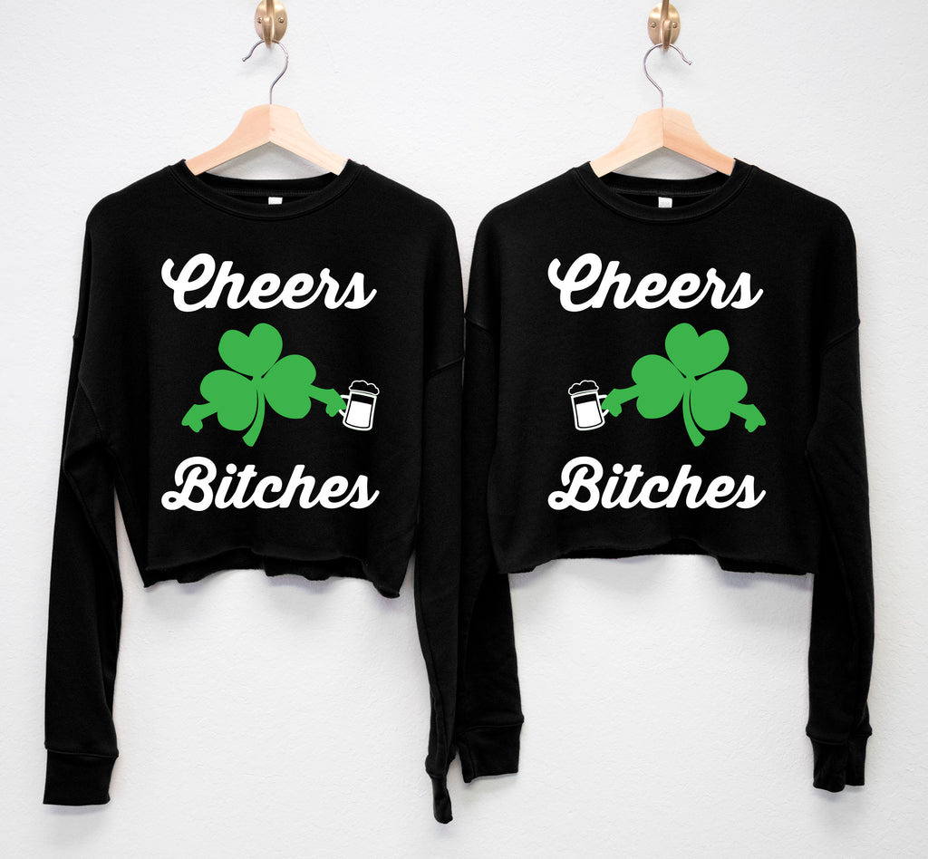 CHEERS BITCHES St. Patrick's Day Cropped Sweater