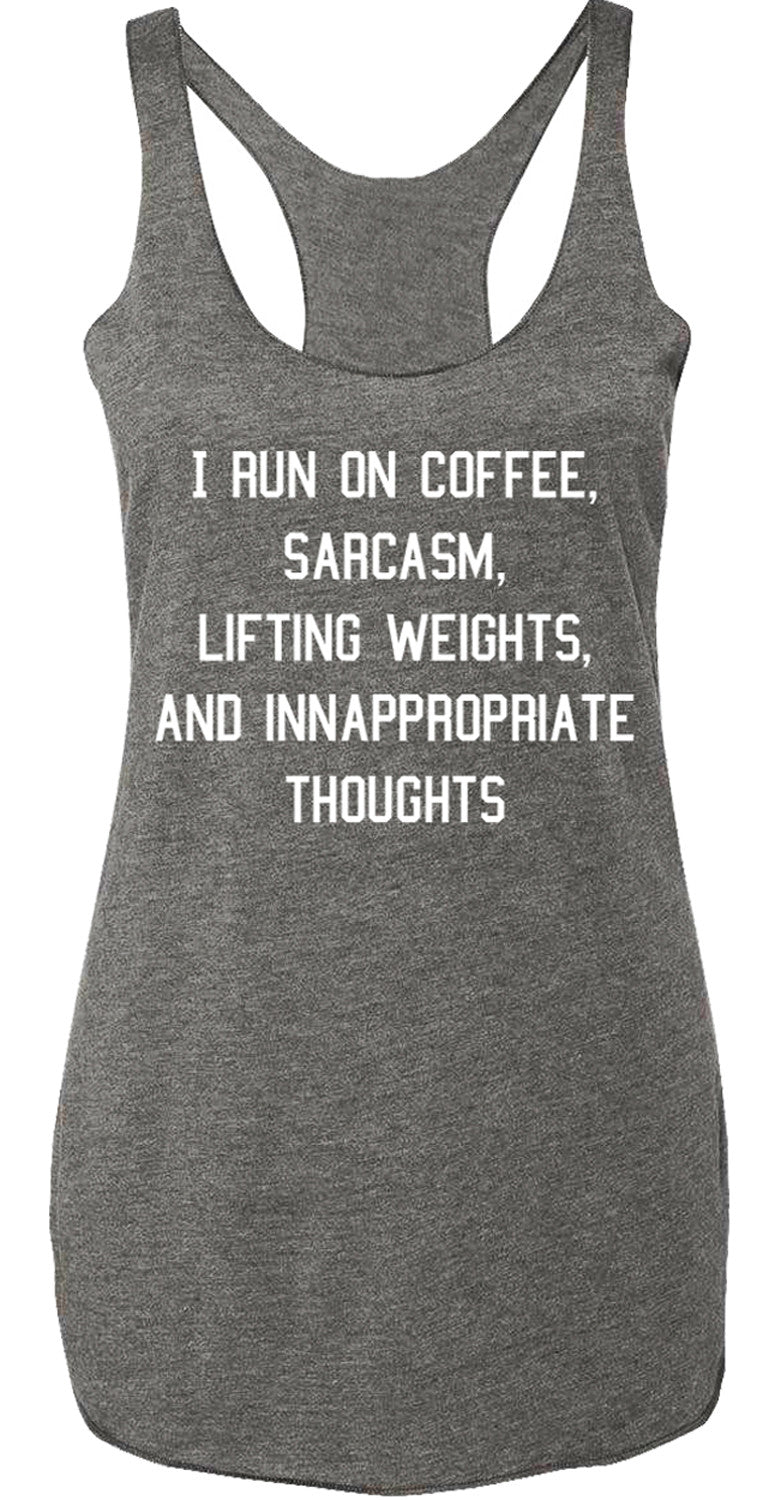 "I RUN ON COFFEE, SARCASM, LIFTING WEIGHTS, AND INAPPROPRIATE THOUGHTS"