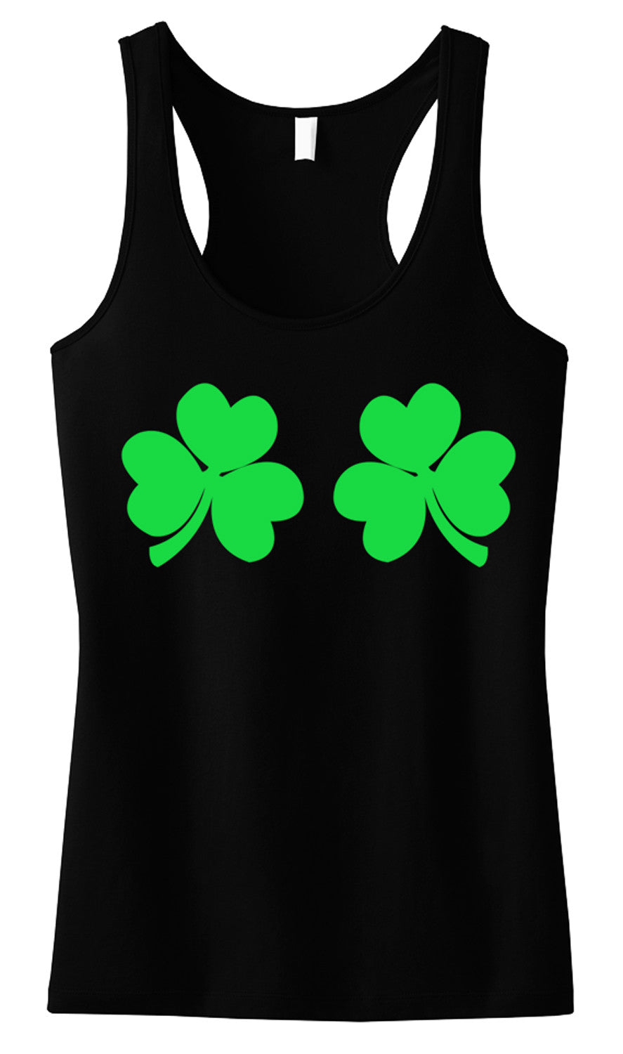 SHAMROCKS BIKINI Women's Black Racerback Tank Top with Green Print