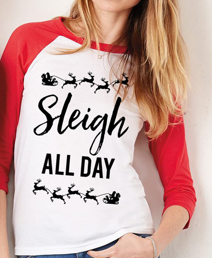 Celebrate Christmas with this fun SLEIGH ALL DAY Baseball Tee!